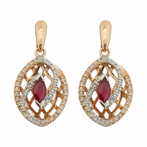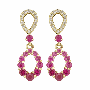 9ct YG Ruby and diamond drop earrings.