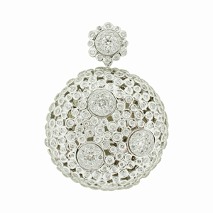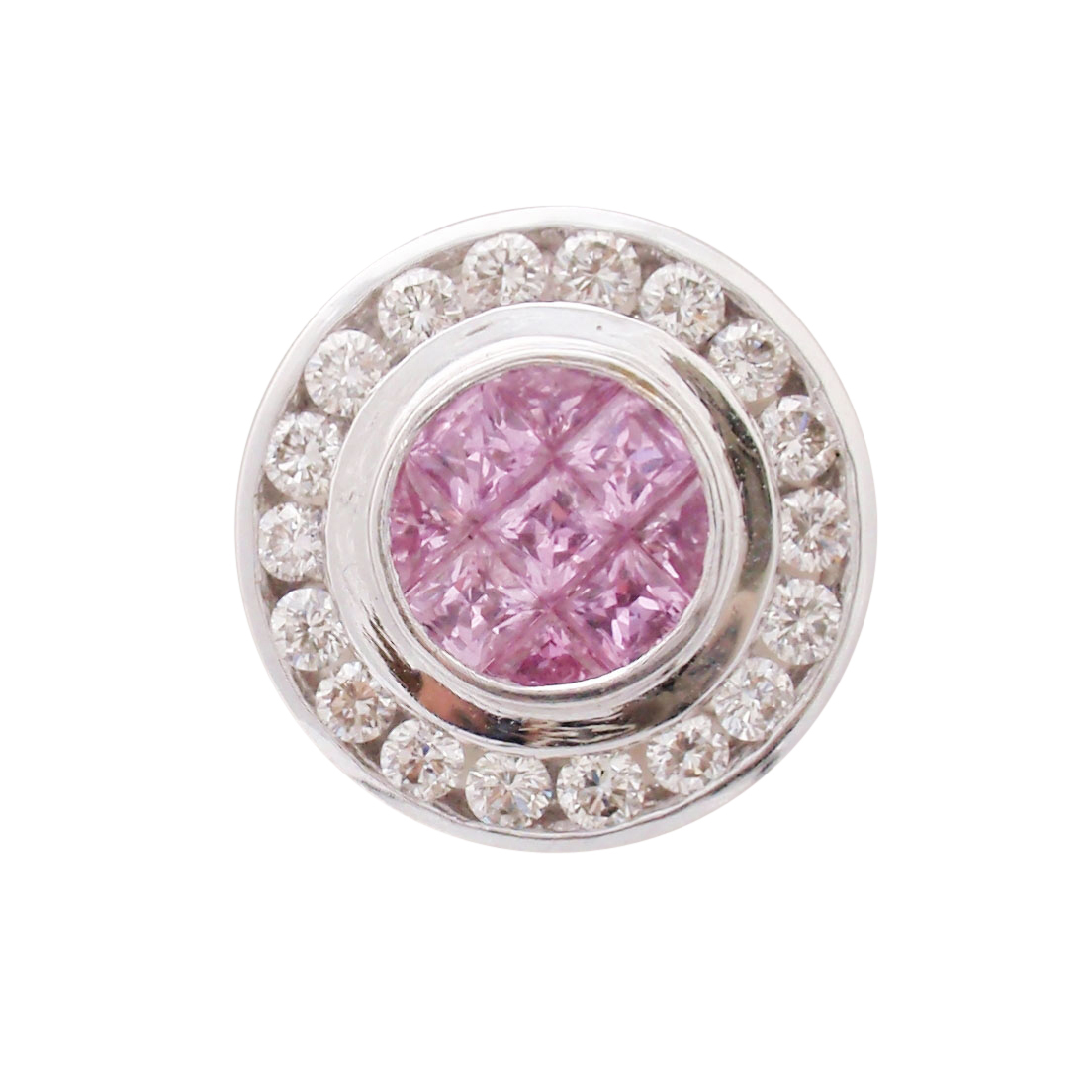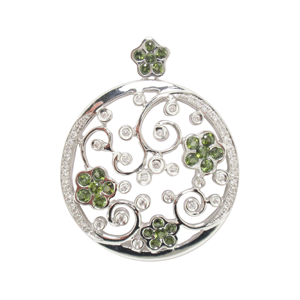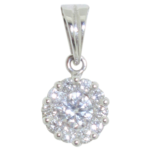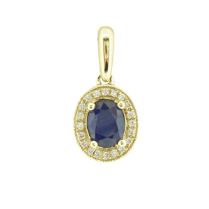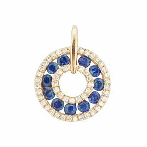 9ct WG circular sapphire and diamond pendant.