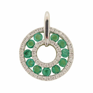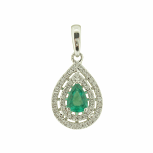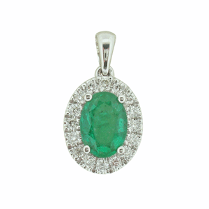 9ct YG emerald and diamond pendant.