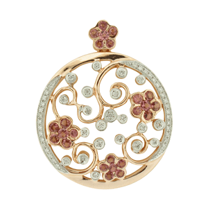9ct YG ruby and diamond necklace