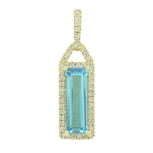 9ct WG aquamarine and diamond pendant.