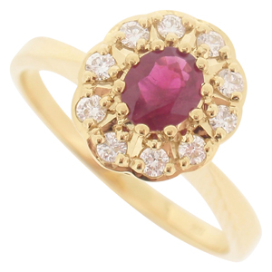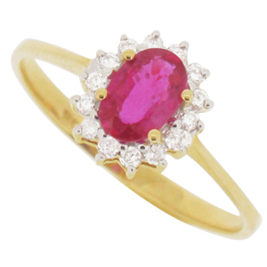 18ct YG ruby and diamond ring.