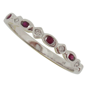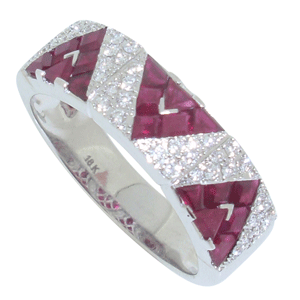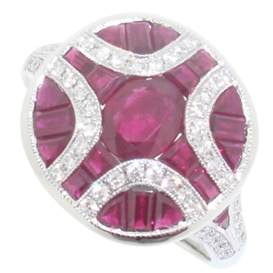 18ct WG ruby and baguette diamond ring.